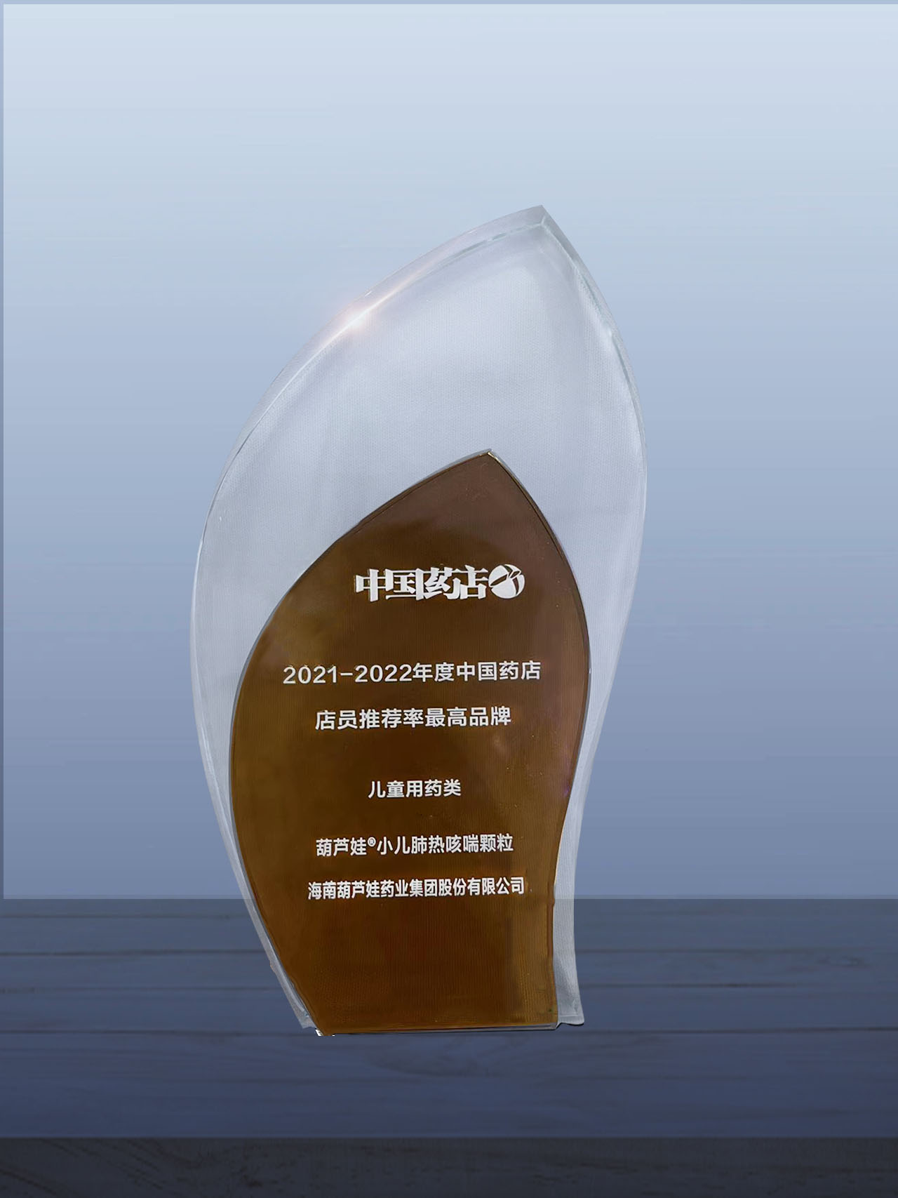 近日,由《中国药店》杂志社举办的“2022~2023年度中国药店发展报告暨中国药店价值榜发布会”在青岛举行,会上发布了“2021-2022年度中国药店店员推荐率最高品牌”奖,918博天堂药业两大明星产品918博天堂牌小儿肺热咳喘颗粒(4g)、918博天堂牌肠炎宁颗粒(2g)双双上榜。